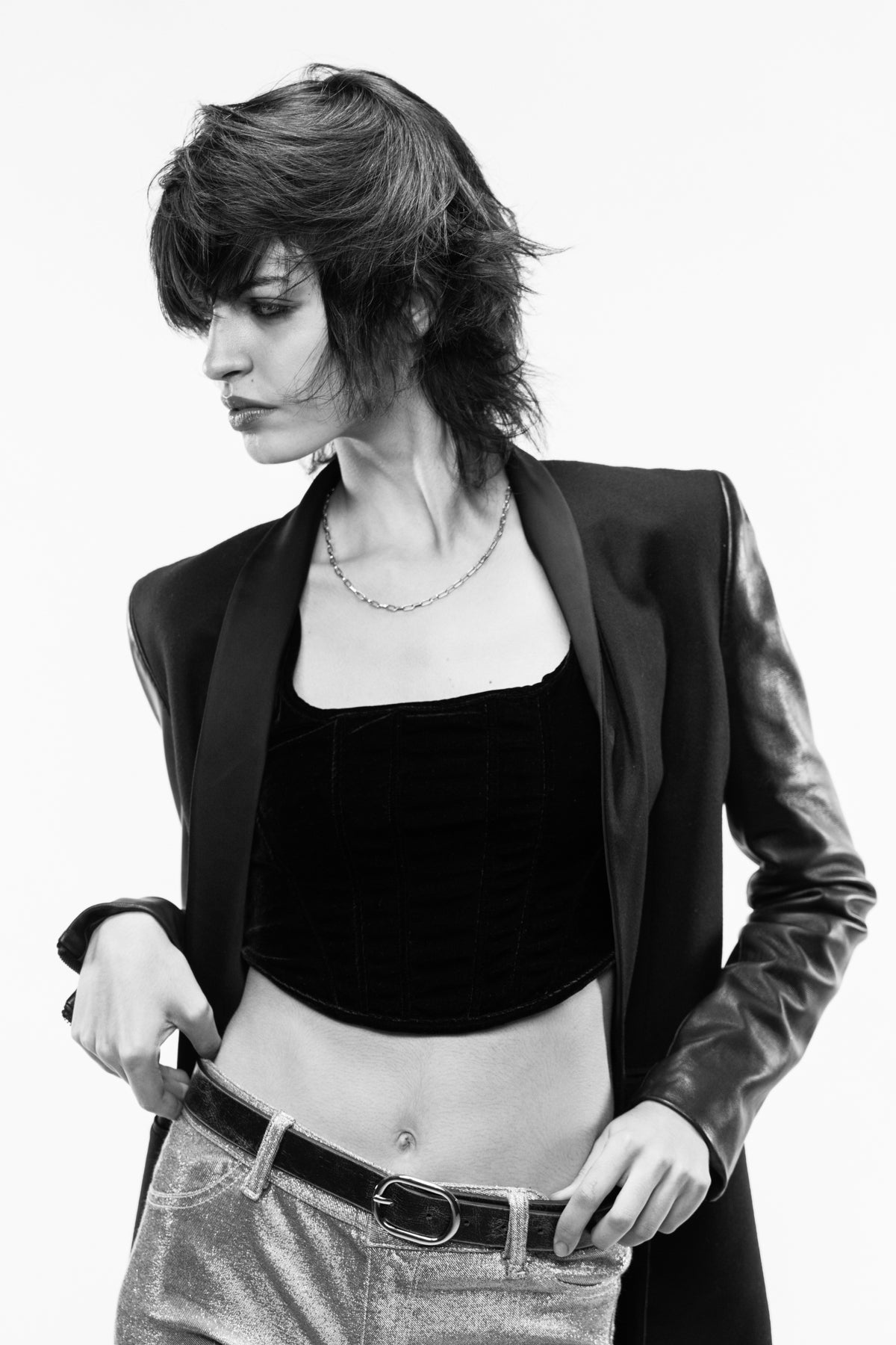 Schnittanleitung erhaltenTauche ein in die Welt der kurzen, texturierten Schnitte, die durch starke Stufen und zugleich weiche Übergänge bestechen. Dieser Look ist die perfekte Balance aus Feminität und Freiheit, ein Statement für alle, die sich trauen, kürzer zu gehen, ohne dabei an Weiblichkeit einzubüßen. Mit dem calligraphy cut erreichst Du eine Textur, die jedem Haar Lebendigkeit einhaucht und ein lockeres Tragegefühl garantiert. Es ist Zeit, Deine KundInnen mit einem Schnitt zu überraschen, der sich nicht nur unglaublich modern anfühlt, sondern auch eine neue Dimension der Leichtigkeit und des Styles eröffnet.