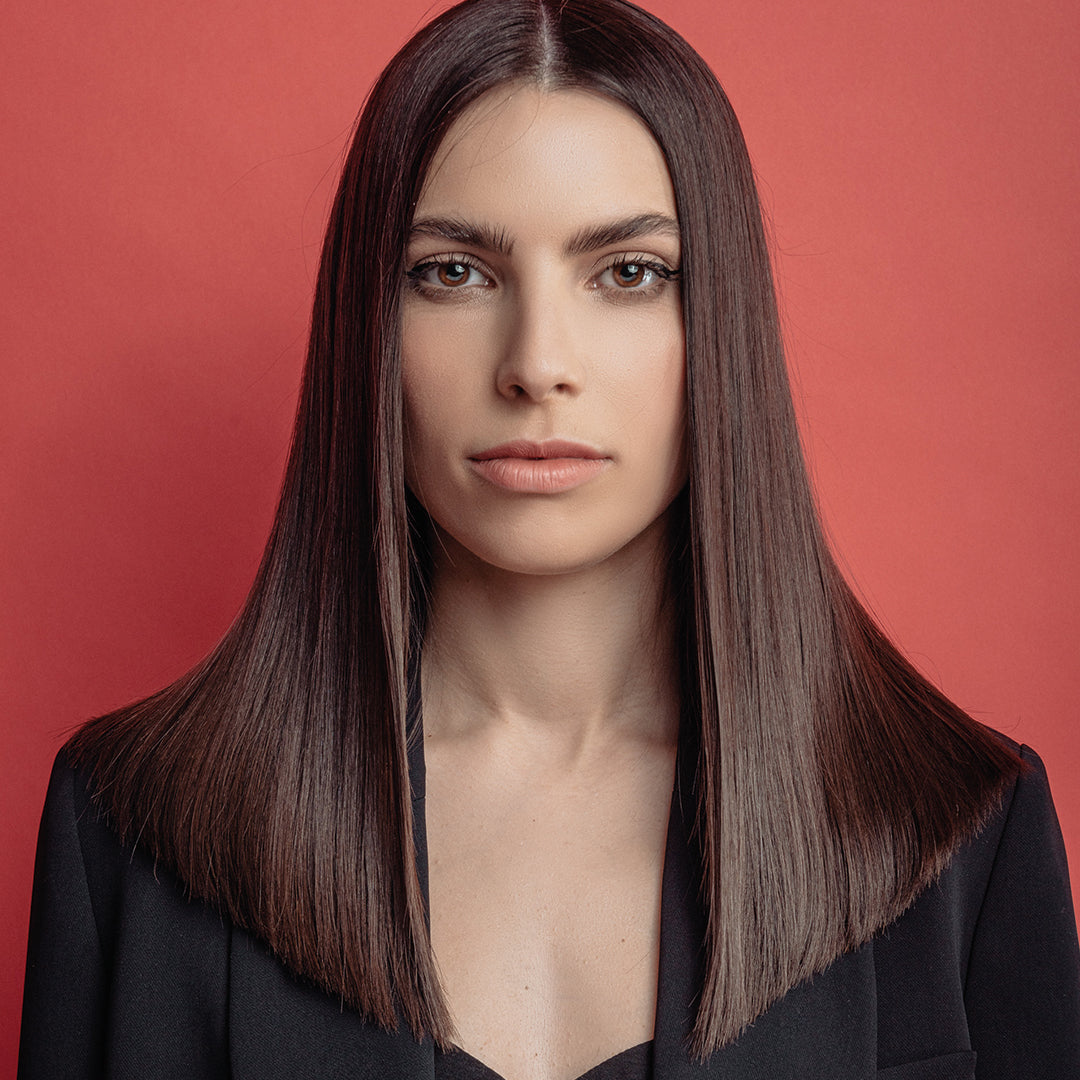 Die Bewegung entsteht durch den diagonalen Schnitt der Haarspitze und lässt das Haar tanzen.