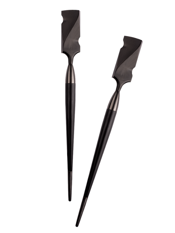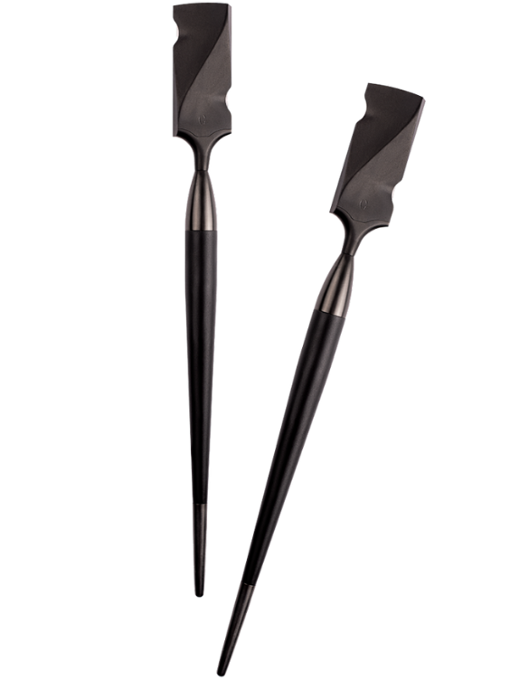Beim calligraphy cut werden die Haare mit einem speziell konzipierten Werkzeug, dem Calligraphen, im Winkel von 21° geschnitten. Der schräge Anschnitt vergrößert die Oberfläche der Haarspitze um 270 %.